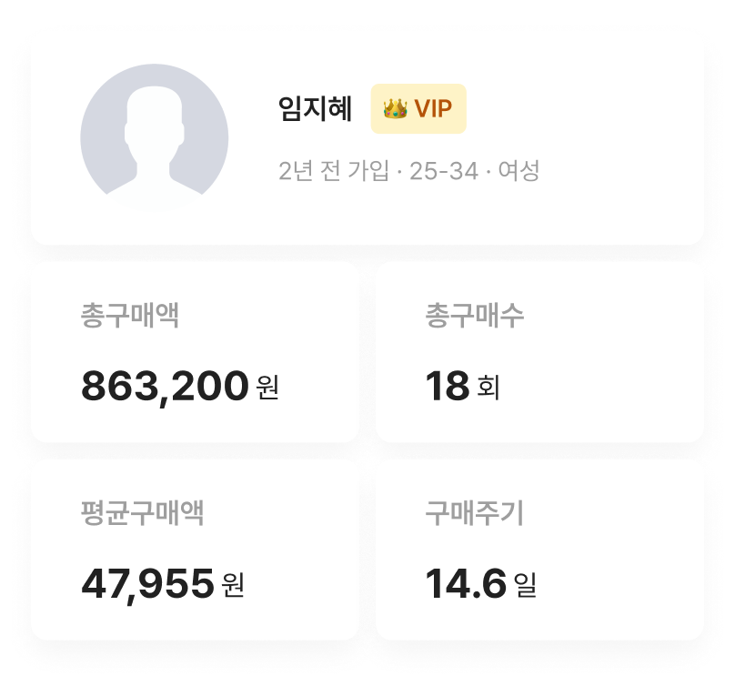 어느 곳에서 만났든 한 번 고객은 영원한 고객. 여러 채널에 흩어져 있는 고객들을 모아 여러분만의 고유한 고객 DB를 구축하세요.